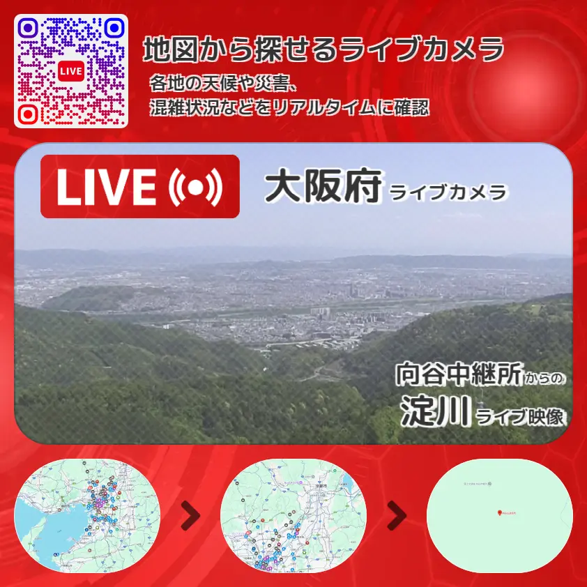 周辺の気象状況も併せてチェックすることが可能で、台風・大雨・地震などの災害による被害状況も把握することができます。