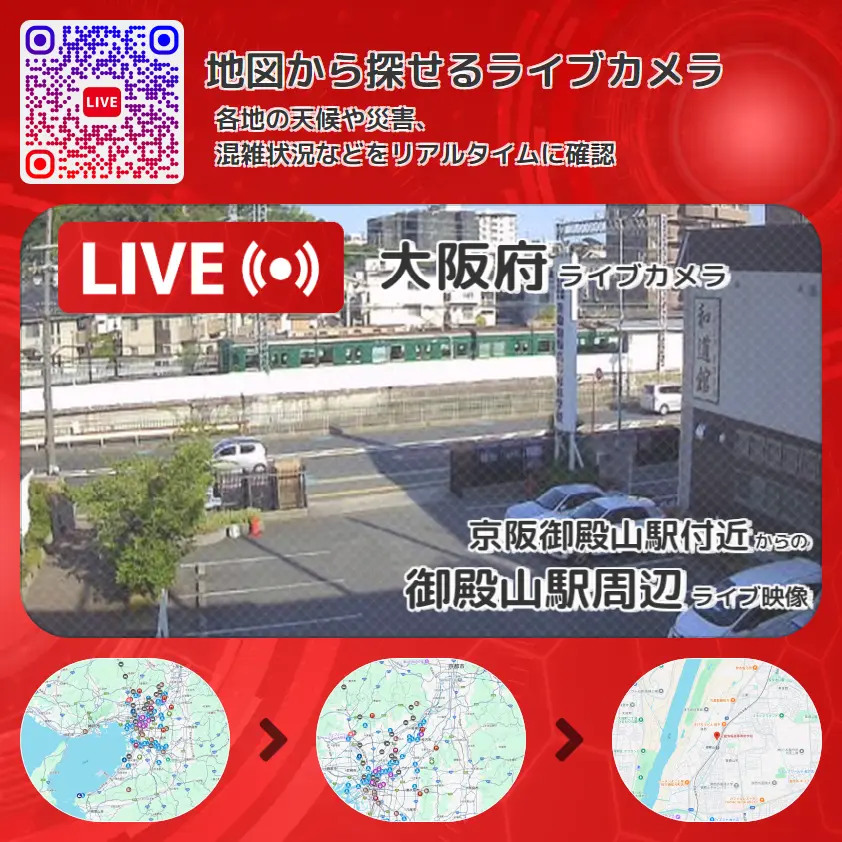 京阪御殿山駅付近から、御殿山駅周辺が確認できるライブカメラです。