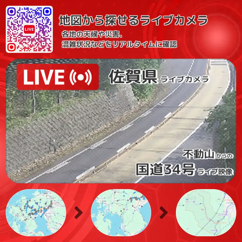 佐賀県 「国道34号」ライブ映像(不動山 設置カメラ) ライブカメラ 監視カメラ