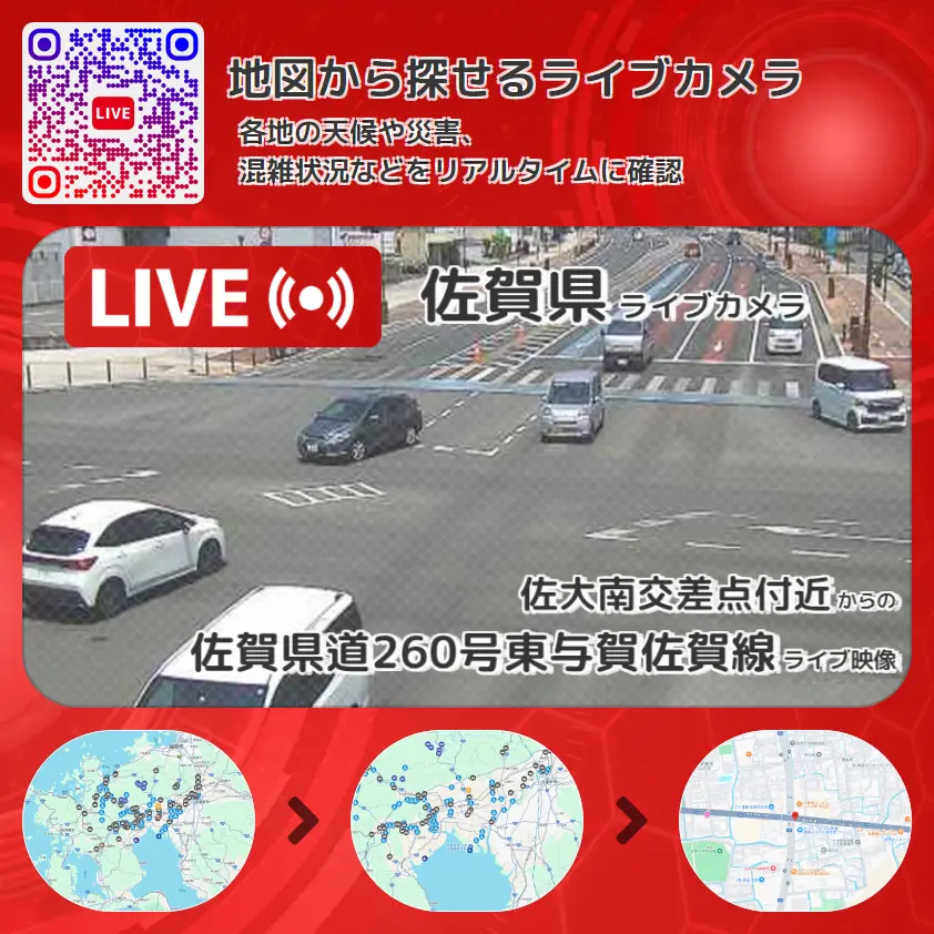 | 映像先 | 佐賀県道260号東与賀佐賀線(佐大通り) 国道208号(環状南通り) |