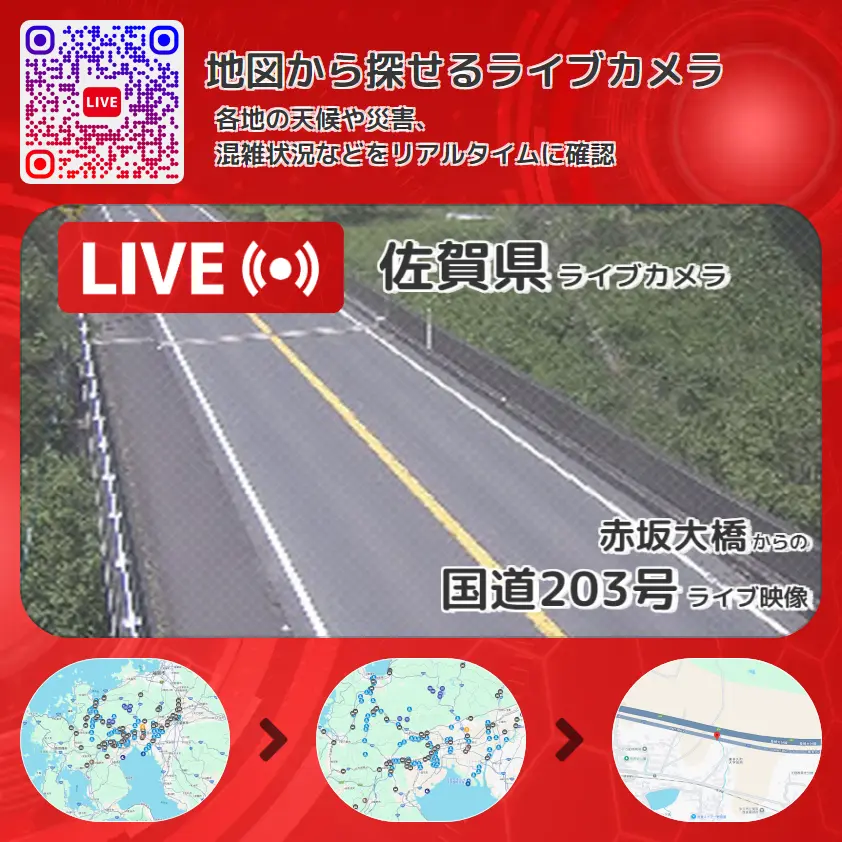 赤坂大橋から、国道203号(東多久バイパス)が確認できるライブカメラです。
