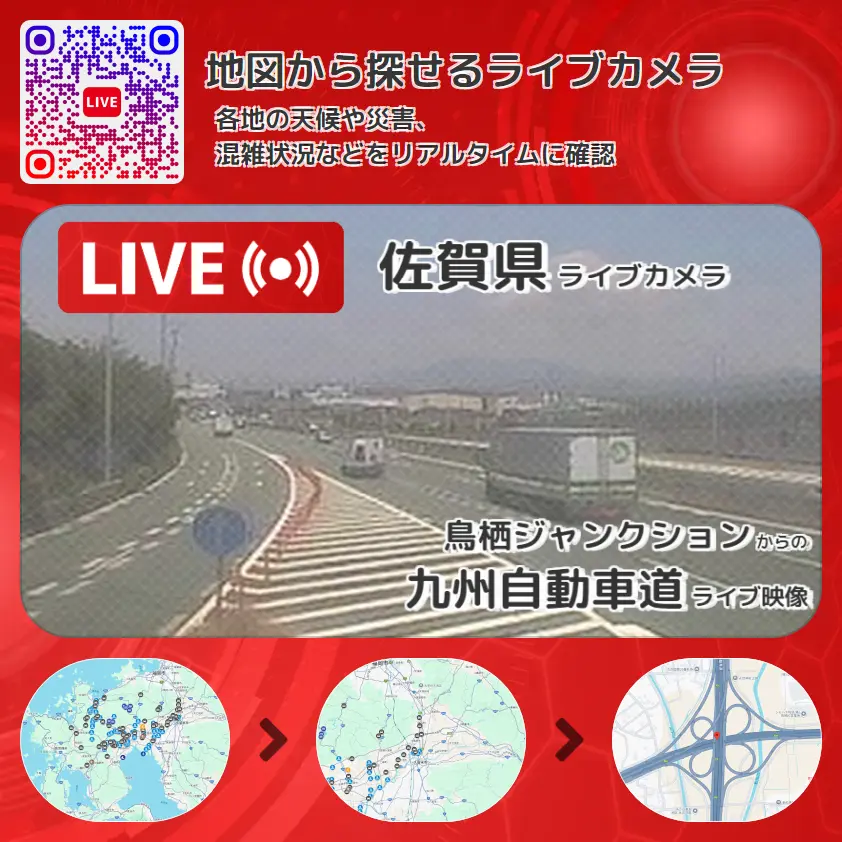 鳥栖ジャンクション(鳥栖JCT)付近から、九州自動車道(九州道)が確認できるライブカメラです。