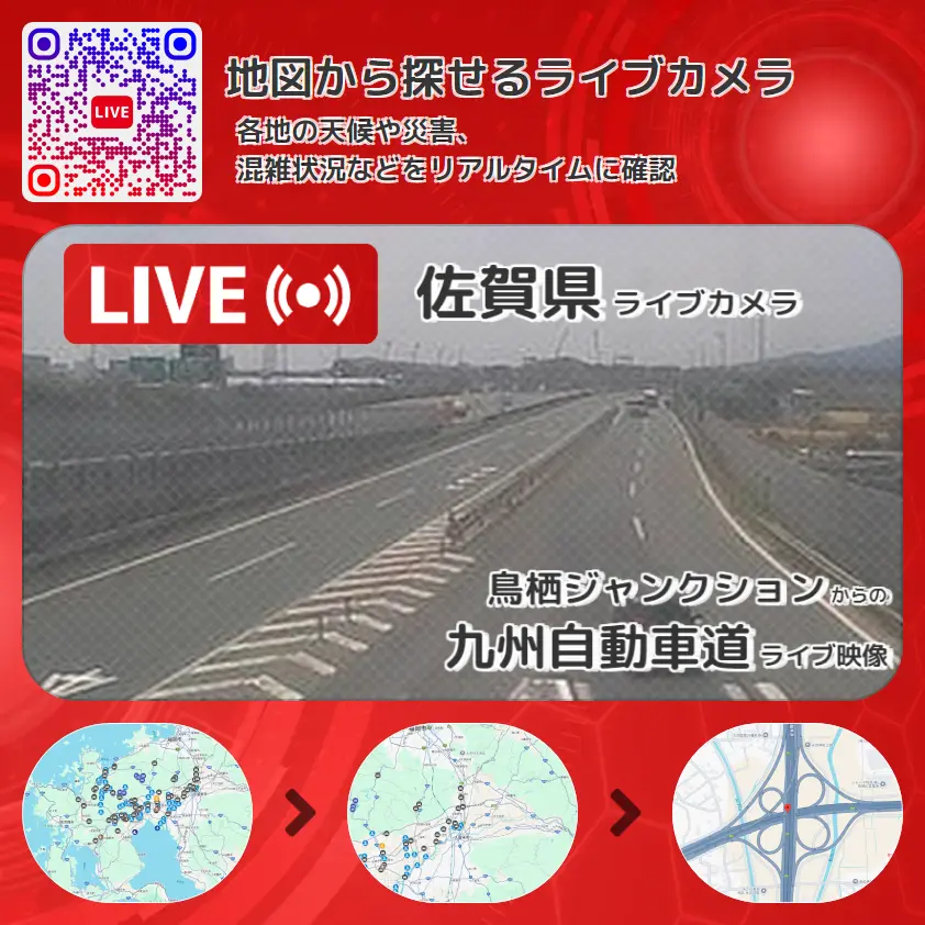 鳥栖ジャンクション(鳥栖JCT)付近から、九州自動車道(九州道)が確認できるライブカメラです。