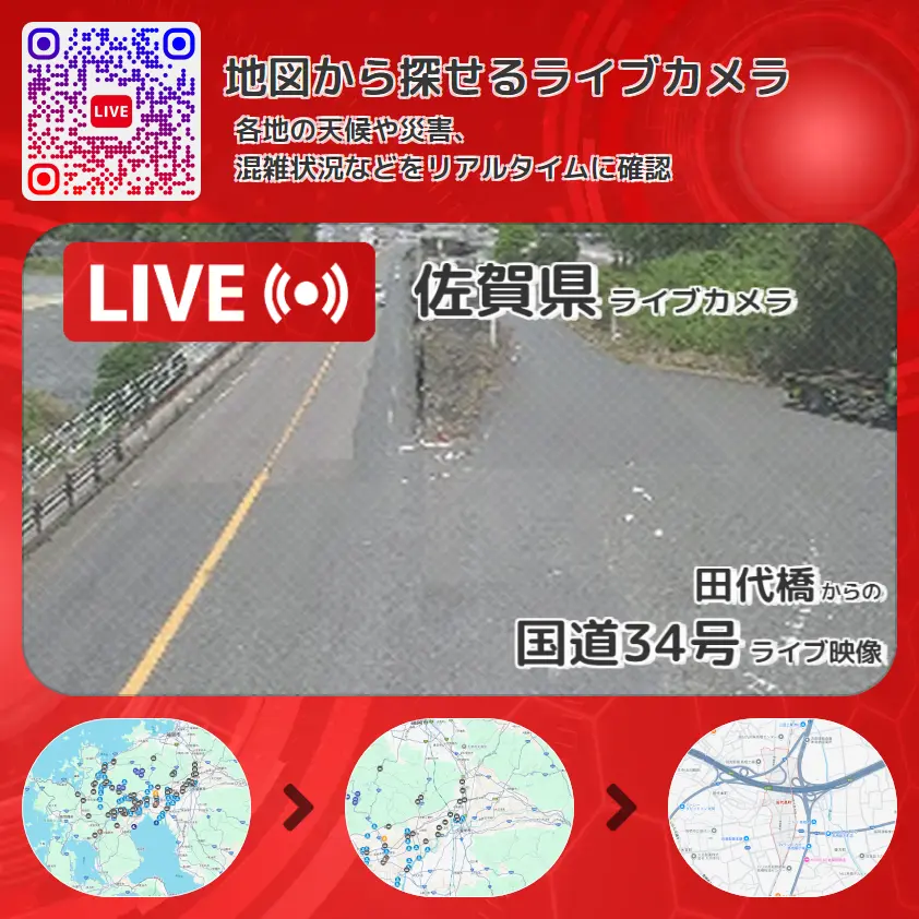 周辺の気象状況も併せてチェックすることが可能で、台風・大雨・地震などの災害による被害状況も把握することができます。