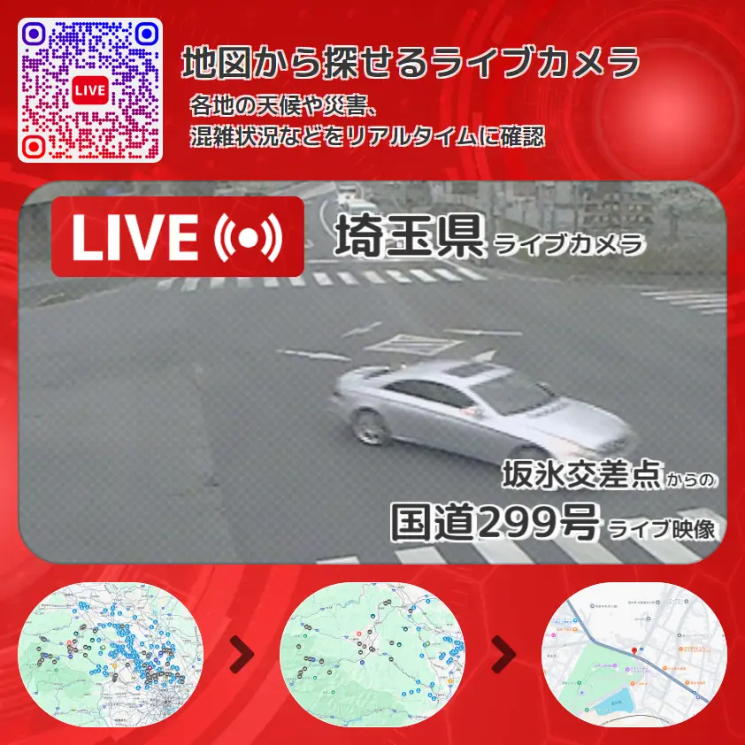 国道299号の他に、埼玉県道11号熊谷小川秩父線や周辺の気象状況も併せてチェックすることが可能で、台風・大雨・地震などの災害による被害状況も把握することができます。