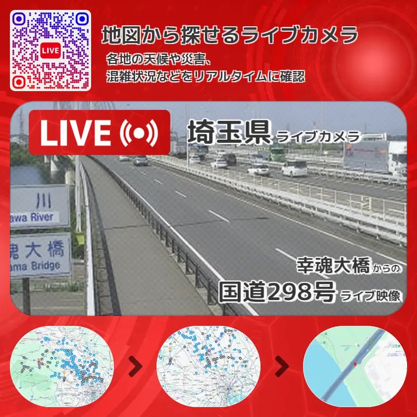 埼玉県 「国道298号」ライブ映像(幸魂大橋 設置カメラ) ライブカメラ 監視カメラ