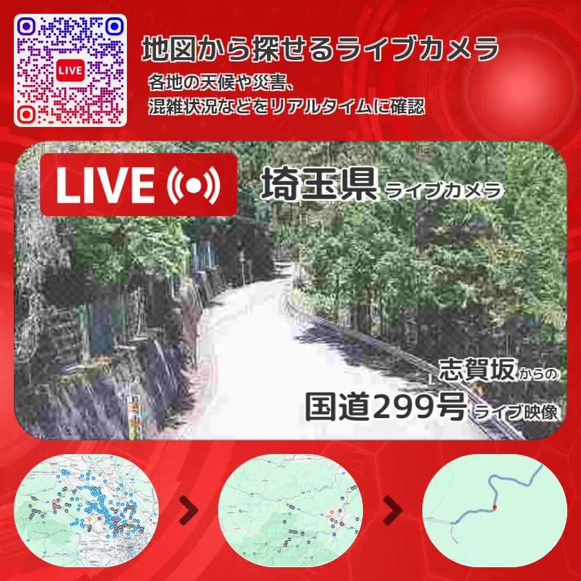 国道299号の他に、志賀坂峠や周辺の気象状況も併せてチェックすることが可能で、台風・大雨・地震などの災害による被害状況も把握することができます。