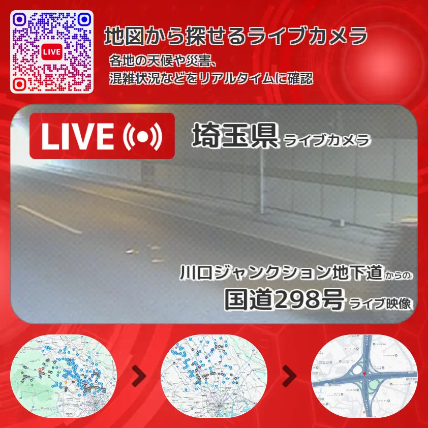 川口ジャンクション地下道(川口JCT地下道)内回りから、国道298号が確認できるライブカメラです。