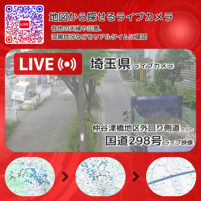埼玉県 「国道298号」ライブ映像(仲谷津橋地区外回り側道 設置カメラ) ライブカメラ 監視カメラ