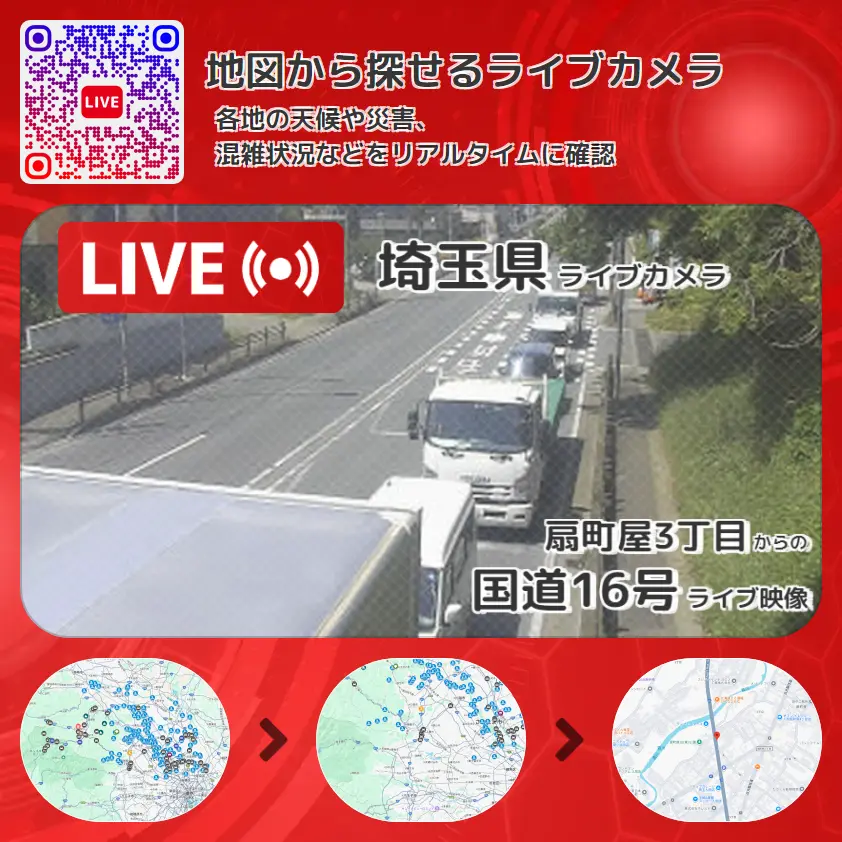 扇町屋3丁目から、国道16号(東京環状)が確認できるライブカメラです。