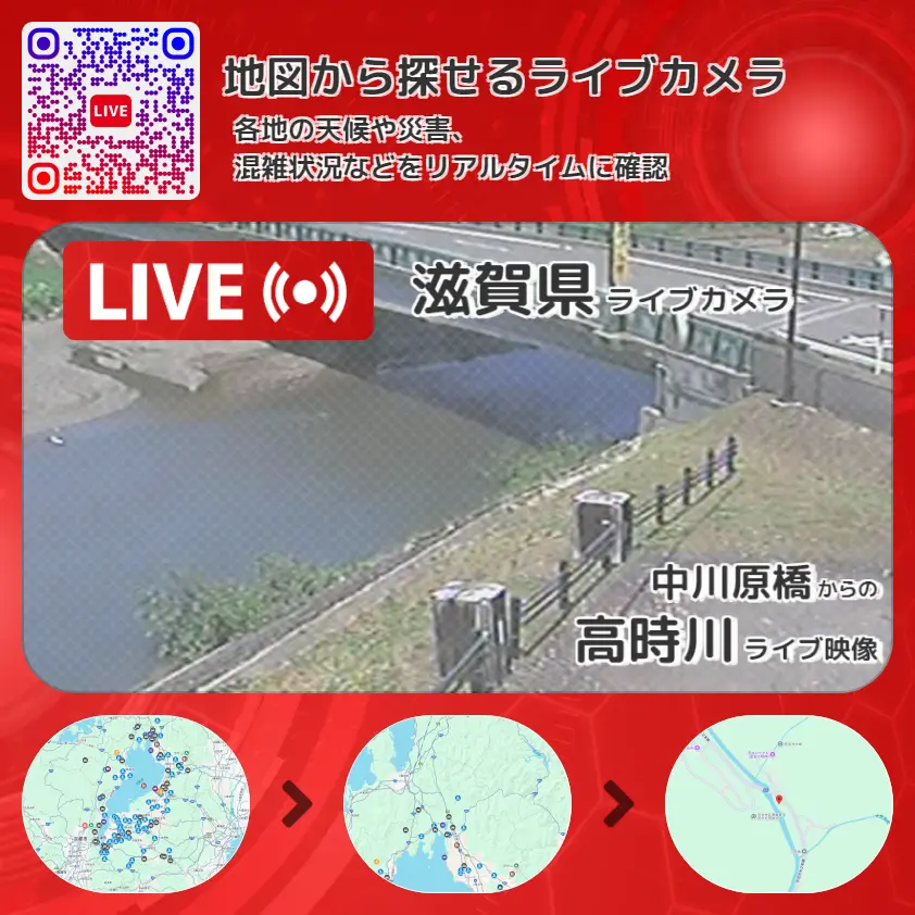 高時川の他に、中川原橋や周辺の気象状況も併せてチェックすることが可能で、台風・大雨・地震などの災害による被害状況も把握することができます。