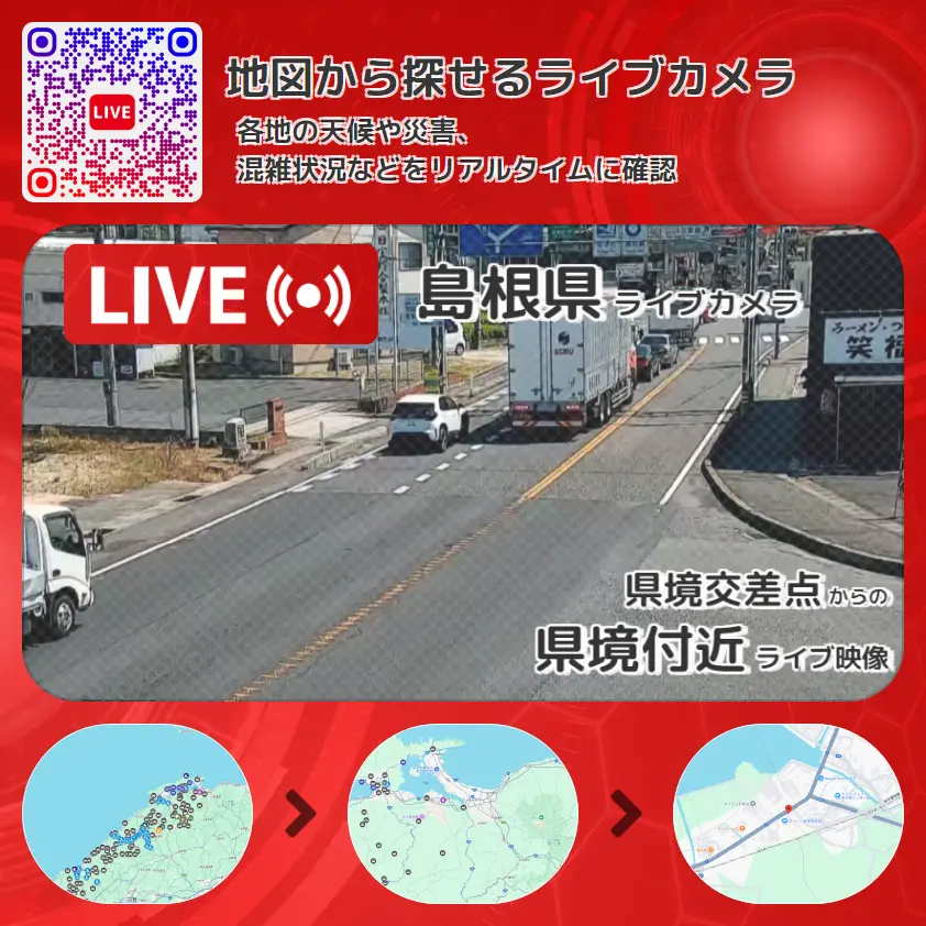 県境交差点から、県境付近(島根県及び鳥取県)が確認できるライブカメラです。