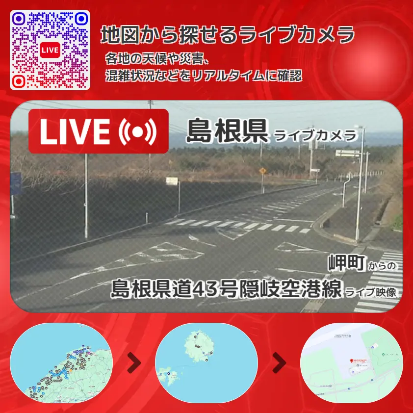岬町(隠岐空港付近)から、島根県道43号隠岐空港線が確認できるライブカメラです。