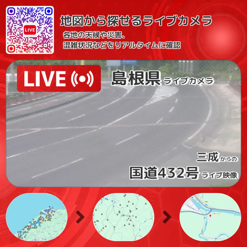 三成(島根県仁多集合庁舎前付近)から、国道432号が確認できるライブカメラです。