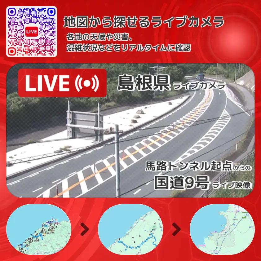 島根県 「国道9号」ライブ映像(馬路トンネル起点 設置カメラ) ライブカメラ 監視カメラ