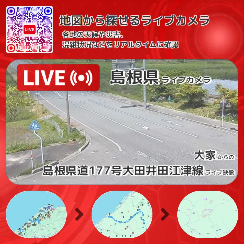 島根県 「島根県道177号大田井田江津線」ライブ映像(大家 設置カメラ) ライブカメラ 監視カメラ