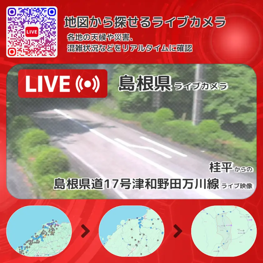桂平(白杭トンネル付近)から、島根県道17号津和野田万川線が確認できるライブカメラです。