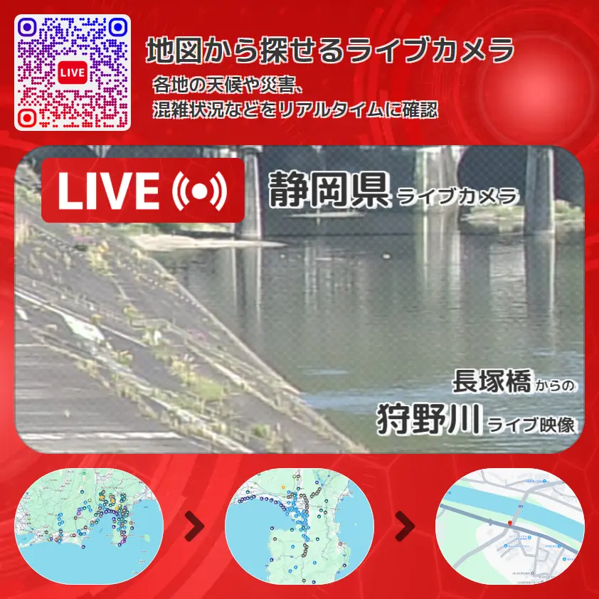 静岡県 「狩野川」ライブ映像(長塚橋 設置カメラ) ライブカメラ 監視カメラ