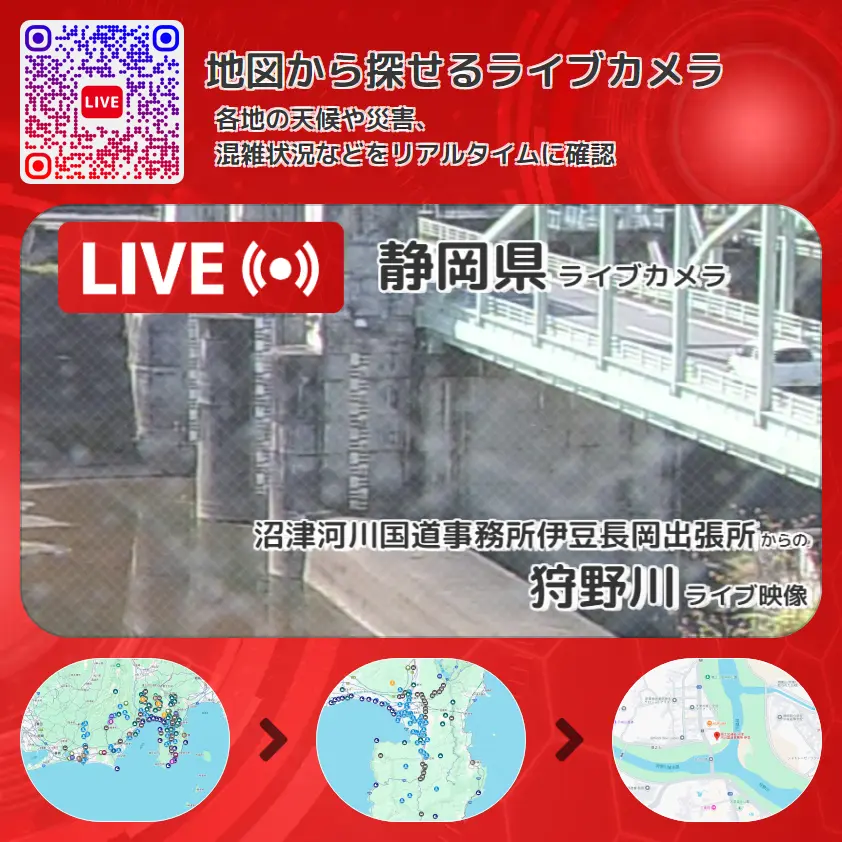 沼津河川国道事務所伊豆長岡出張所から、狩野川が確認できるライブカメラです。