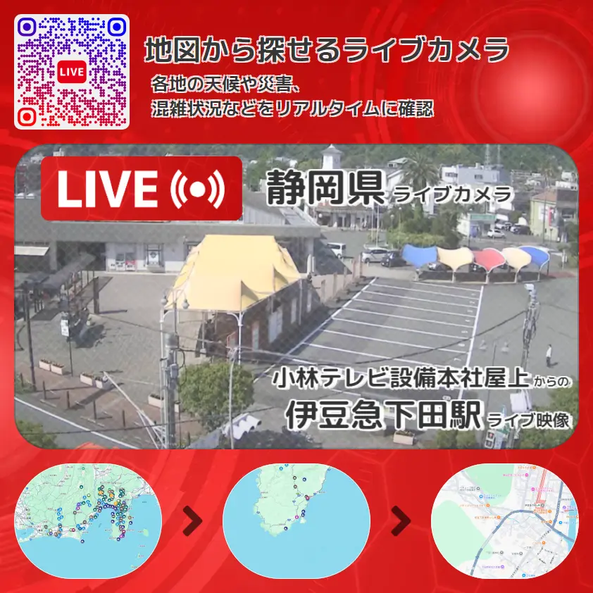 伊豆急下田駅(伊豆急行伊豆急行線)の他に、国道136号や周辺の気象状況も併せてチェックすることが可能で、台風・大雨・地震などの災害による被害状況も把握することができます。