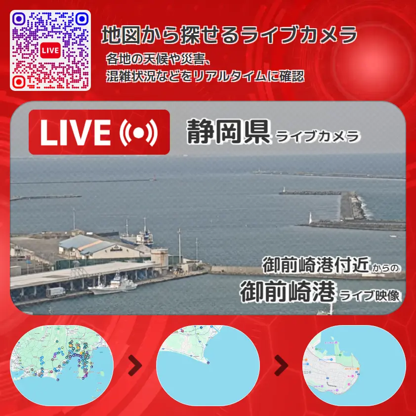 御前崎港の他に、御前崎港西埠頭(御前崎埠頭)や周辺の気象状況も併せてチェックすることが可能で、台風・大雨・地震などの災害による被害状況も把握することができます。