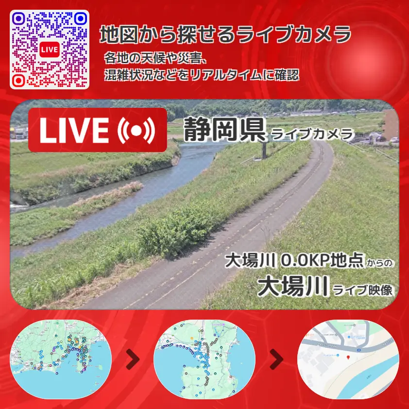 大場川の他に、狩野川や周辺の気象状況も併せてチェックすることが可能で、台風・大雨・地震などの災害による被害状況も把握することができます。