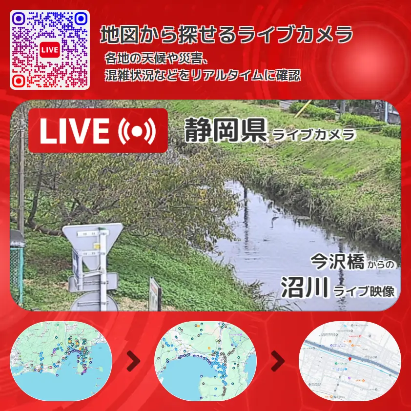 | 配信 | 静岡県交通基盤部河川砂防局土木防災課(静岡県土木総合防災情報SIPOS-RADAR河川監視カメラ) |
