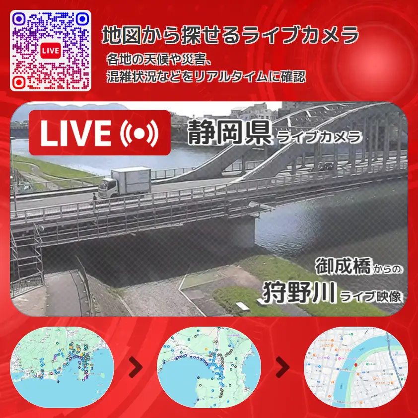 狩野川の他に、御成橋や周辺の気象状況も併せてチェックすることが可能で、台風・大雨・地震などの災害による被害状況も把握することができます。