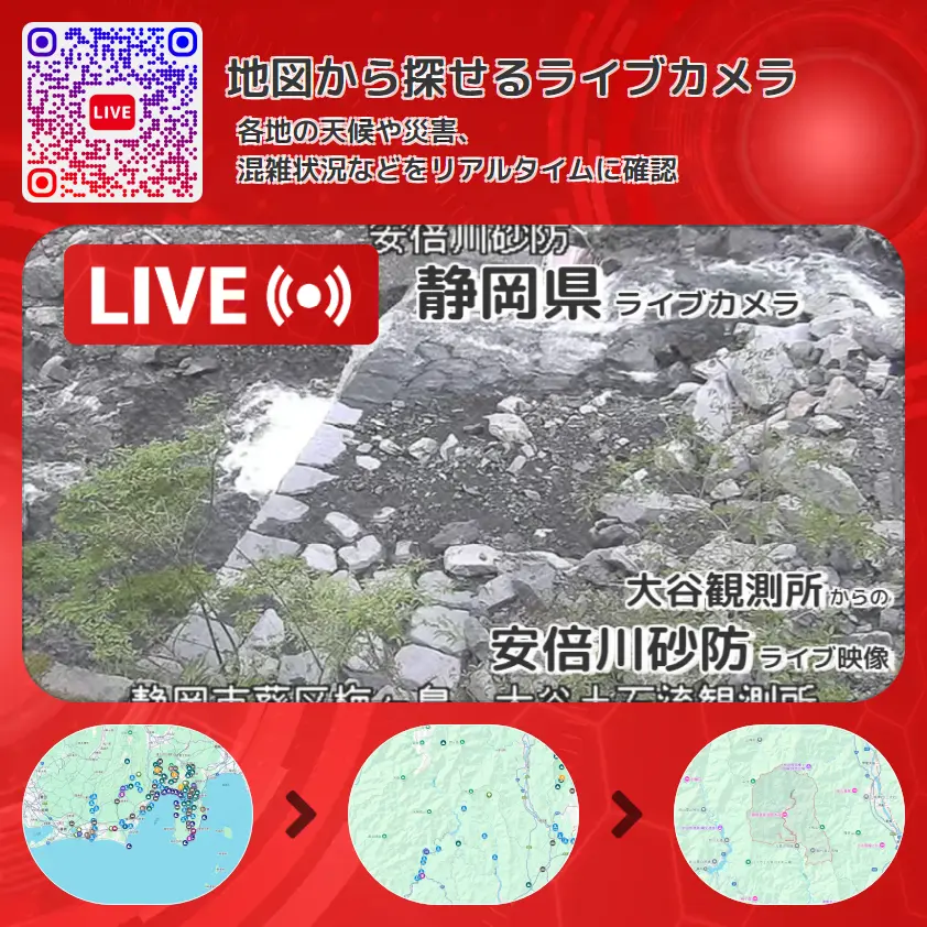 大谷観測所から、安倍川砂防が確認できるライブカメラです。