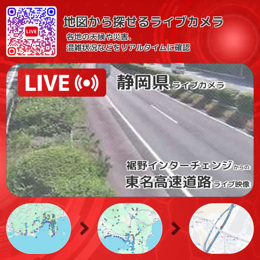 裾野インターチェンジ(裾野IC)から、東名高速道路(東名高速)が確認できるライブカメラです。