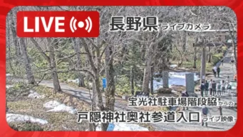 「戸隠神社奥社参道入口」ライブ映像(宝光社駐車場階段脇 設置カメラ)