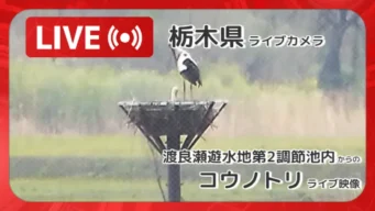 「コウノトリ」ライブ映像(渡良瀬遊水地第2調節池内 設置カメラ)