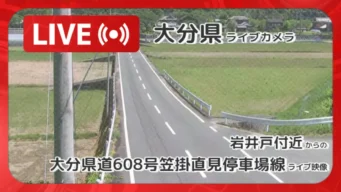 大分県 「大分県道608号笠掛直見停車場線」ライブ映像(岩井戸付近 設置カメラ)