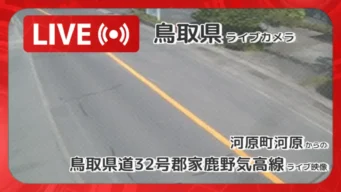 鳥取県 「鳥取県道32号郡家鹿野気高線」ライブ映像(河原町河原 設置カメラ)
