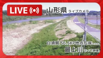 「最上川」ライブ映像(白須賀 56.5KP地点左岸 設置カメラ)