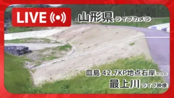 山形県 「最上川」ライブ映像(皿島 42.7KP地点右岸 設置カメラ)