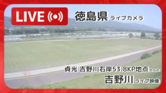 「吉野川」ライブ映像(貞光 吉野川右岸53.8KP地点 設置カメラ)
