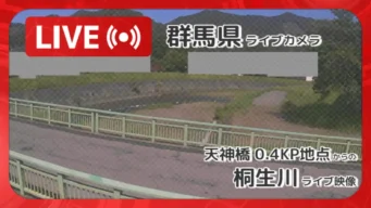 「桐生川」ライブ映像(天神橋 0.4KP地点 設置カメラ)