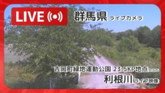 群馬県 「利根川」ライブ映像(吉岡町緑地運動公園 23.5KP地点 設置カメラ)