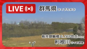 群馬県 「利根川」ライブ映像(板井銀輪橋 6.7KP地点 設置カメラ)