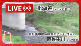 北海道 「置杵牛川」ライブ映像(置杵牛川水位観測所 3.9KP地点 設置カメラ)