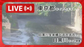 「目黒川」ライブ映像(目黒川宝来橋上流合流点 設置カメラ)