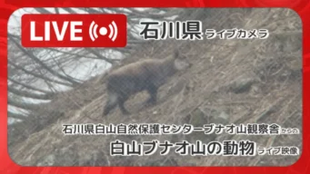 「白山ブナオ山の動物」ライブ映像(石川県白山自然保護センターブナオ山観察舎 設置カメラ)