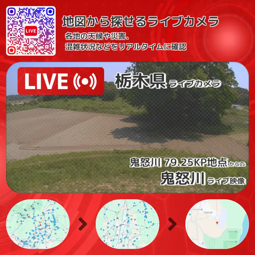 鬼怒川の他に、柳田緑地や周辺の気象状況も併せてチェックすることが可能で、台風・大雨・地震などの災害による被害状況も把握することができます。