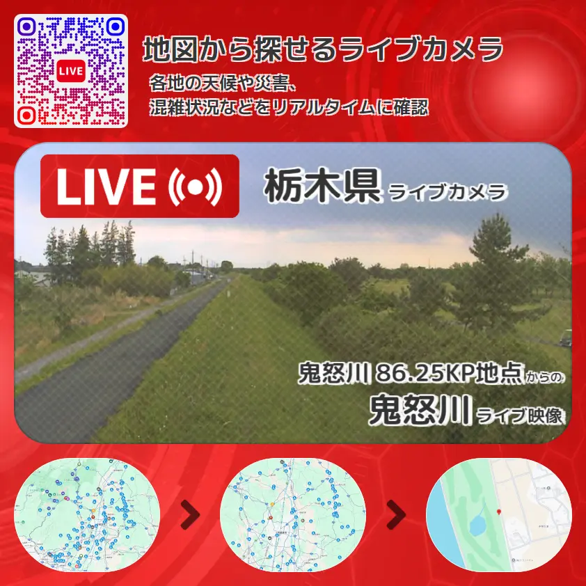 鬼怒川の他に、栃木県民ゴルフ場や周辺の気象状況も併せてチェックすることが可能で、台風・大雨・地震などの災害による被害状況も把握することができます。
