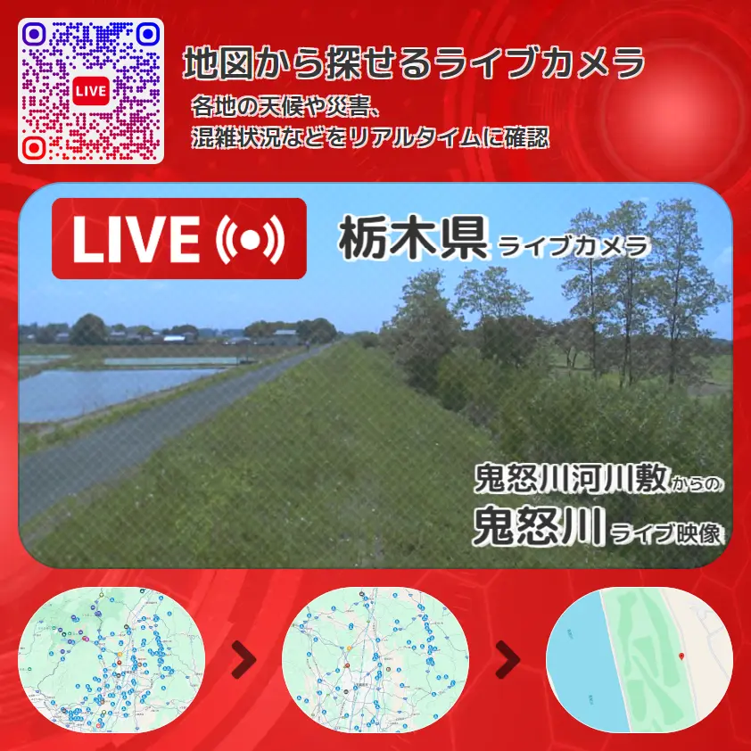鬼怒川の他に、栃木県民ゴルフ場や周辺の気象状況も併せてチェックすることが可能で、台風・大雨・地震などの災害による被害状況も把握することができます。