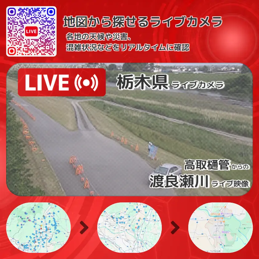 周辺の気象状況も併せてチェックすることが可能で、台風・大雨・地震などの災害による被害状況も把握することができます。