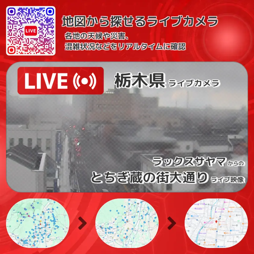 栃木県 「とちぎ蔵の街大通り」ライブ映像(ラックスサヤマ 設置カメラ) ライブカメラ 監視カメラ