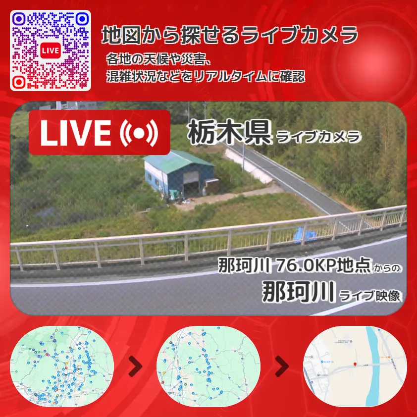 那珂川の他に、大松橋や周辺の気象状況も併せてチェックすることが可能で、台風・大雨・地震などの災害による被害状況も把握することができます。