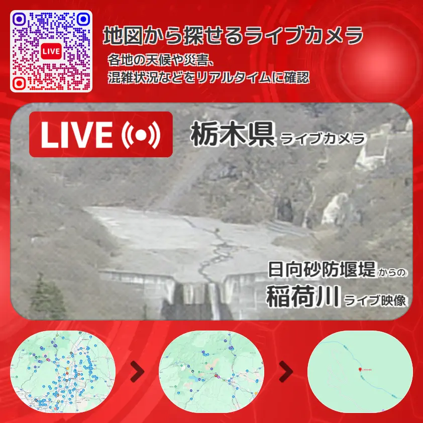 栃木県 「稲荷川」ライブ映像(日向砂防堰堤 設置カメラ) ライブカメラ 監視カメラ